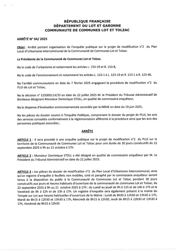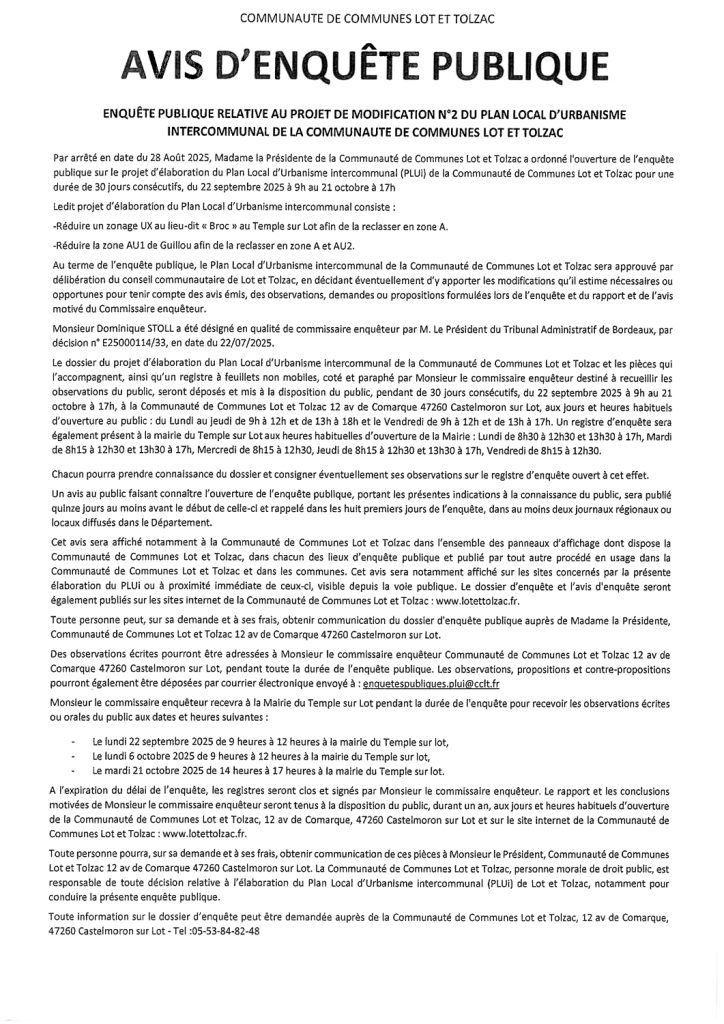 Enquête publique projet de modification N°2 PLUi