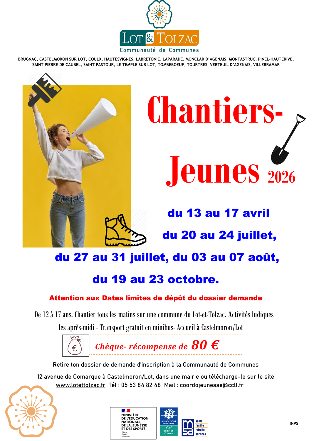 Actualité Le prochain chantier aura lieu du 13 au 17 avril, attention pour une demande d’inscription en avril envoyer le dossier au plus tard le 30 mars!