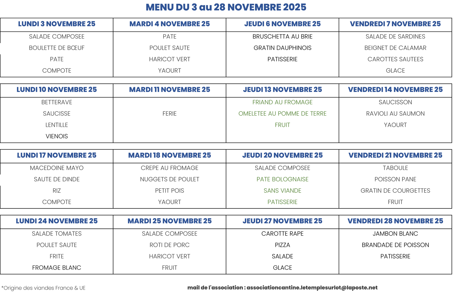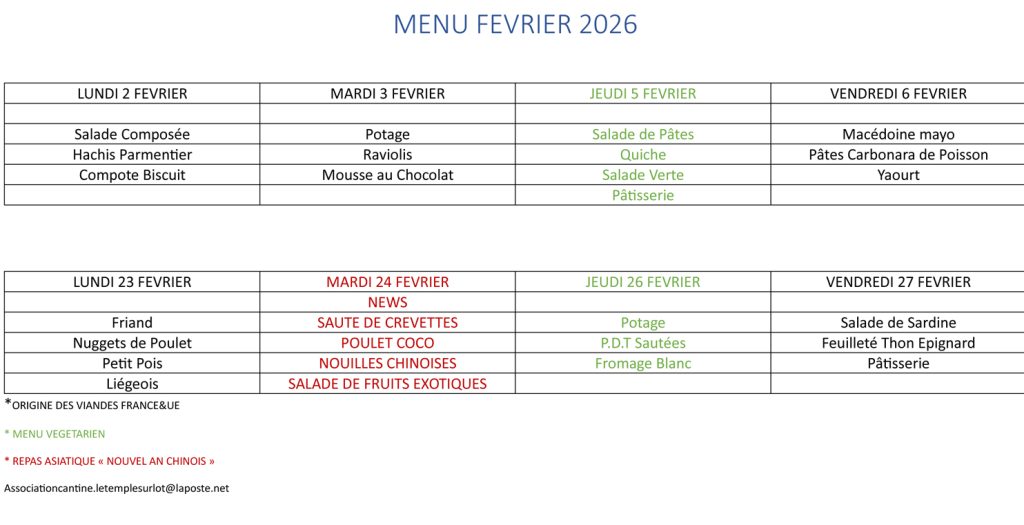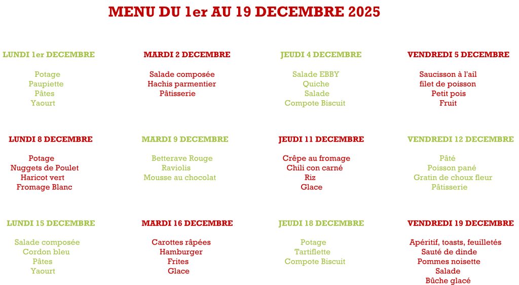 Le repas enfant est à 2,50€ (payable au mois d’avance)