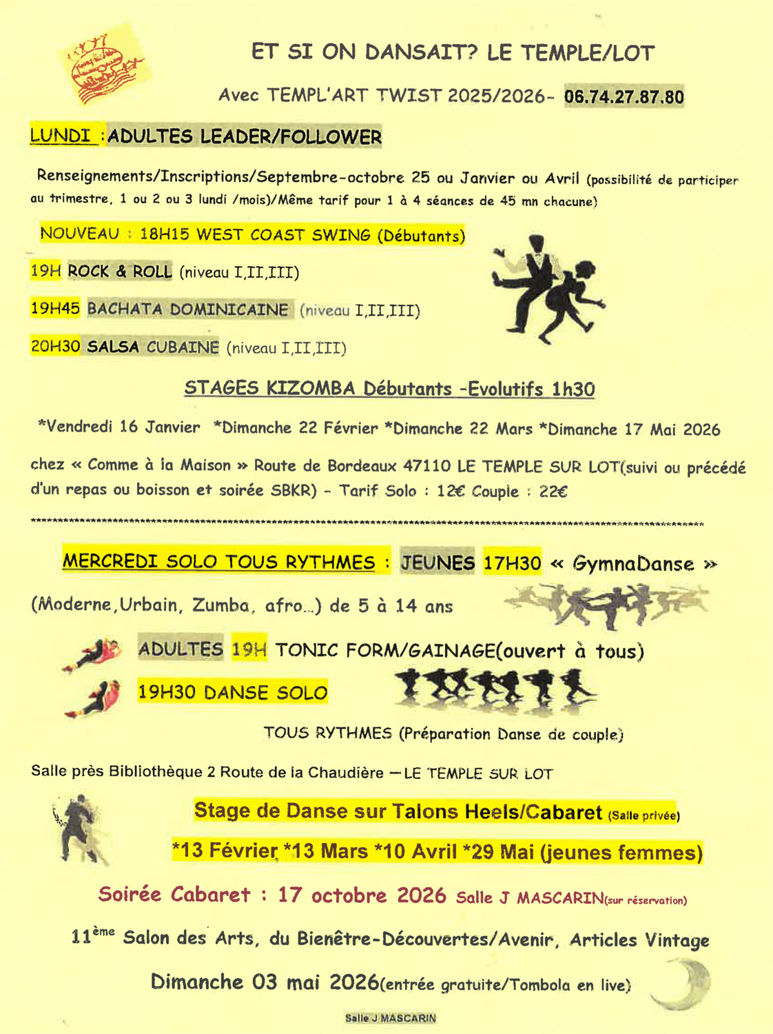 Association Templ’ Art 06.74.27.87.80 (après 18h30 et jusqu’ à 20h)